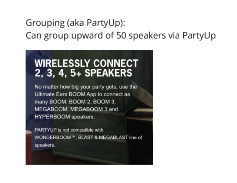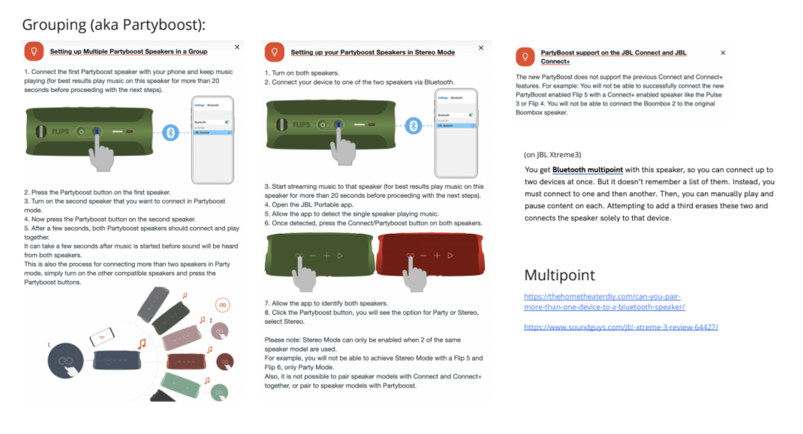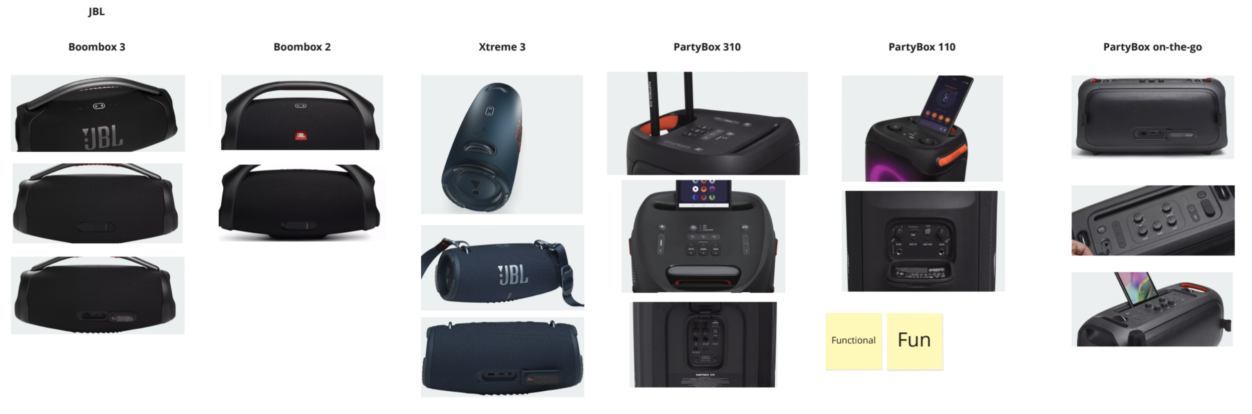 This market analysis was key for the next steps of designing the on product button, naming the feature, as well as determining the general consistency we want across all portable speakers now, and in the future.