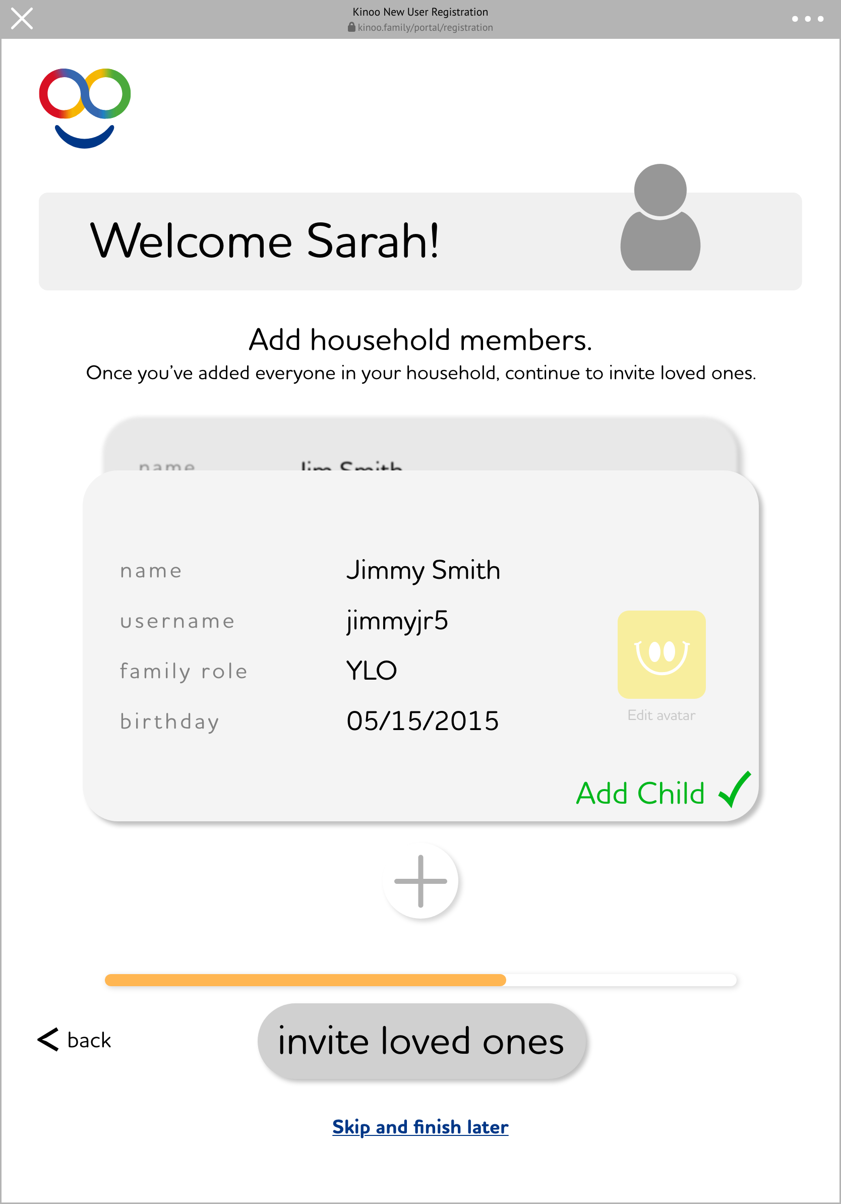 Create a simple and easy onboarding flow for our users (intended for parents and grandparents) while simultaneously capturing all of the necessary information needed for account creation. As many of our users were older adults lacking confidence in their technical abilities, we introduced the elements on our home screen interface, resulting in increased confidence of our users.